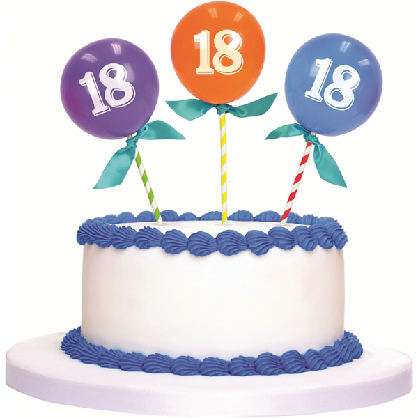 Pack of 3 Cake Topper 18th Balloon 3PK.
