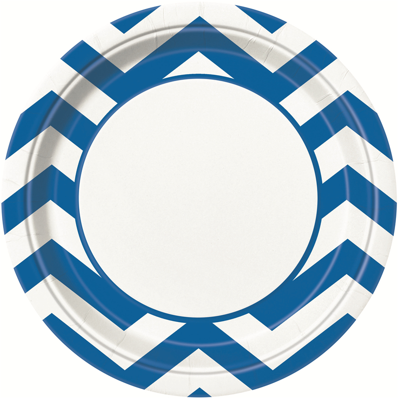 Pack of 8 Chevron 23cm Plates Royal Blue. Measurement: 23cm. Made of Paper.