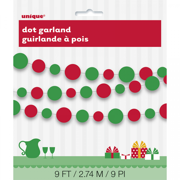 1 X Garland Dots Red & Green. Lenght: 2.74m. Made of Cardboard.