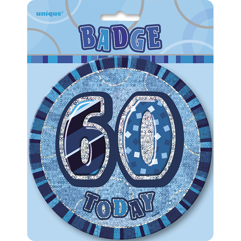 1 X Glitz Birthday Blue Badge 60TH. Approx 15cm Round. Made of Metal.