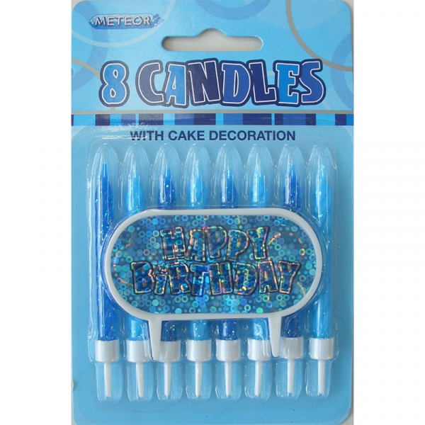Pack of 8 Glitz Birthday Blue Candles. length: 7cm.
