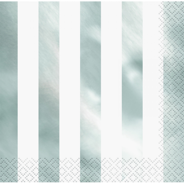 Pack of 16 Silver Foil Stripe Luncheon Napkins. Size:33x33cm when fully open. Made of Quality Foil Paper. It is just gorgerous shiny colour. Will for sure be a hit for your wedding, birthday or any events party.