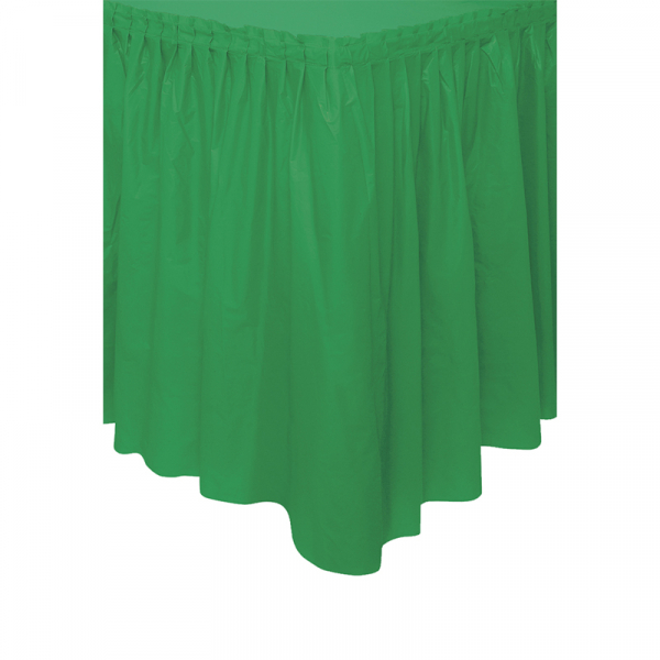 1 X Tableskirt Green. Green Table Skirt Is One length Measuring Approx 4.3M Long With A 73cm Drop And Is Suitable For Round, Square Or Rectangular Shaped Tables. Versatile And Ideal For A Variety of Occasions Including A Garden Wedding, Christening, Baby Shower Or A Birthday.This Table Skirt Will Transform Your Trestle Table Into The Perfect Party Table - Just Position The Skirt Along The Edge of Your Table With The Self-Adhesive Strip Backing Provided. Please Note White Tablecloth On Top of Table Is Sold Separately And Not Included.<BR/> Made of Plastic.