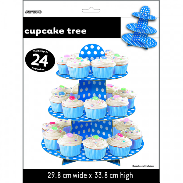 1 X Polka Dots Cupcake Tree Royal Blue. Measurement: 29.8 X 33.8cm. Made of Paper. Holds up to 24 Cupcakes.