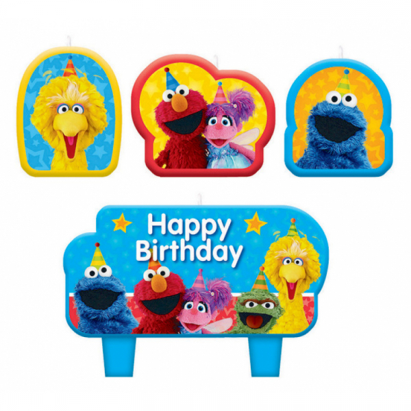 Pack of 4 Sesame Street Birthday Candle Set. Contains: 3 x Mini candles are approx 3.5cm and 1 x the Happy Birthday candle sign is 8cm x 5cm.